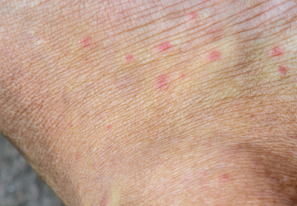 На коже больного развиваются болезненные элементы сыпи, которая похожа на экссудативную эритему. В паху, подмышечных зонах и на шее увеличиваются в размерах лимфоузлы.