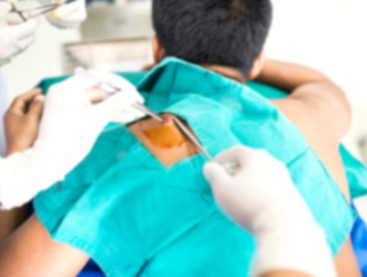 - Хирургическое удаление скальпелем. Операция проводится под местной анестезией. Хирург выполняет надрезы необходимой глубины и иссекает подвергшиеся изменениям ткани. Рана ушивается, и на нее накладывается асептическая повязка. После полного заживления кожи швы удаляются.