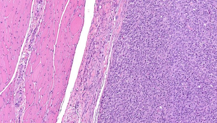 Эмбриональная рабдомиосаркома является крайне агрессивным новообразованием и отличается своим быстрым инвазивным ростом и метастазированием с током крови или лимфы. Чаще такие злокачественные опухоли возникают в области головы или шеи, реже – в конечностях, брюшной полости или на половых органах.