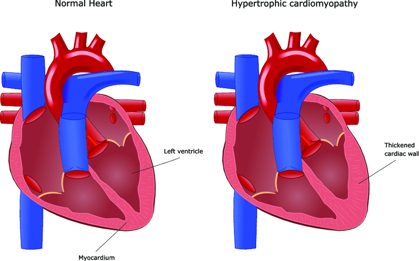Это заболевание характеризуется утолщением стенок сердца за счет гипертрофии миокарда.