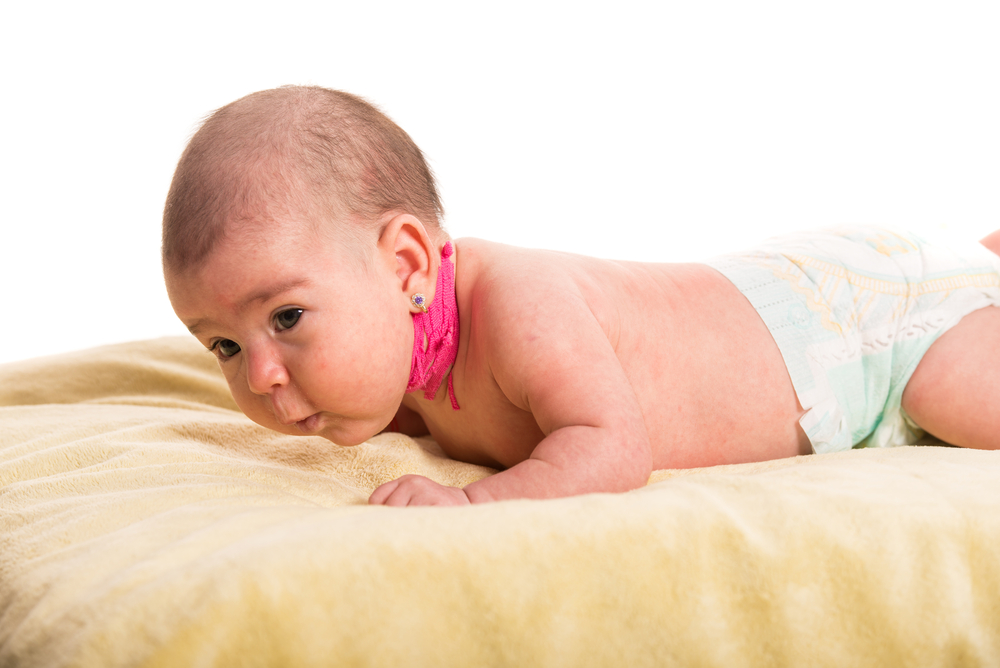Кроме того, у грудничков может быть выявлен младенческий (идиопатический) сколиоз. Он встречается реже, чем у старших детей. Выявляется педиатрами при осмотре младенца в положении лежа на животе: позвоночник имеет дугу, и ямка на затылке не на одной линии с межъягодичной щелью.